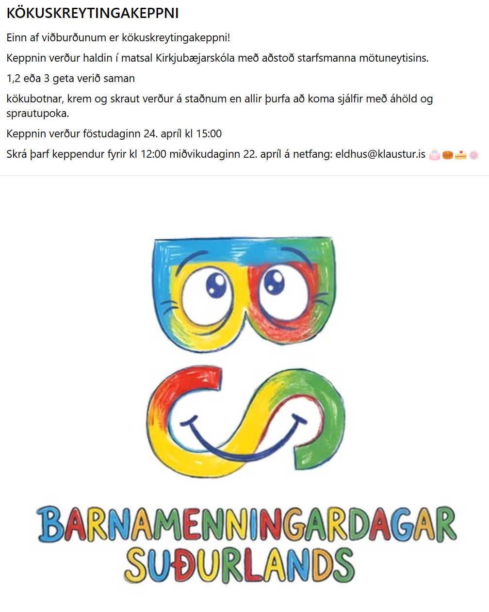 Hér má sjá upplýsingar um kökuskreytingakeppni: