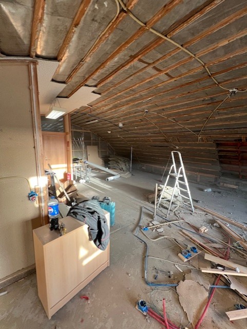 Framkvæmdir standa yfir í Félagsheimilinu Kirkjuhvoli, þar er búið að hreinsa innan úr efri hæð og steinteppi hefur verið fjarlægt.