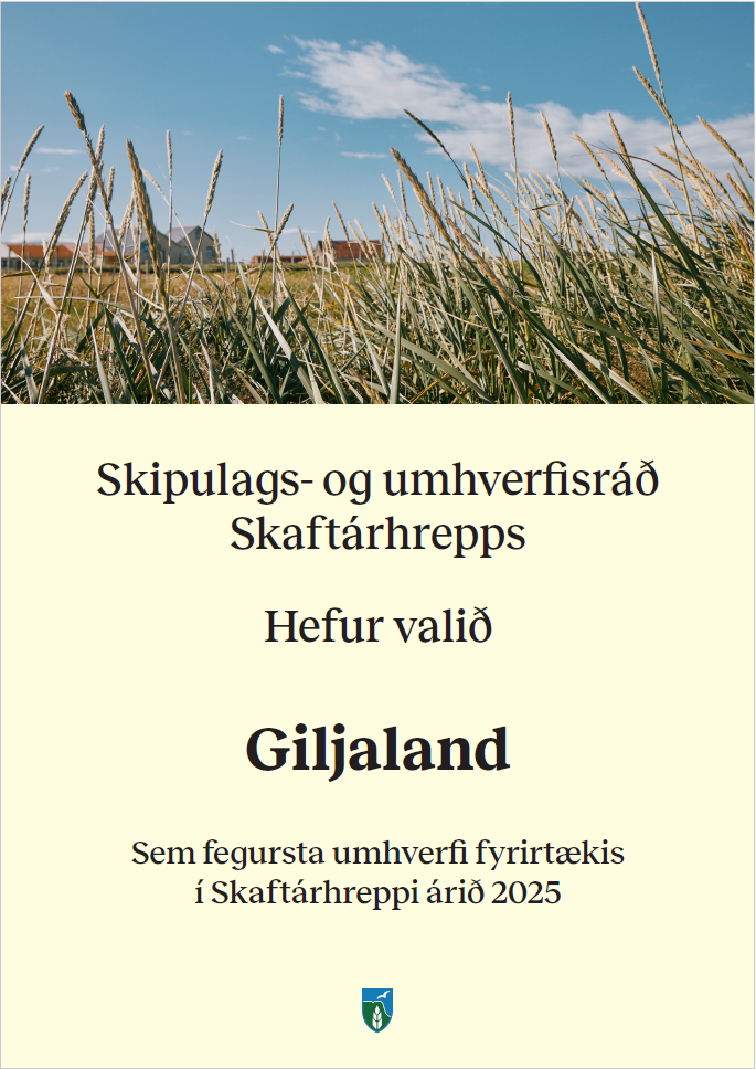 - Giljaland, sem fegursta umhverfi fyrirtækis í Skaftárhreppi árið 2025 og
